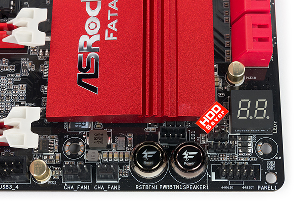 Среди дополнительных особенностей платы ASRock Fatal1ty X99X Killer можно отметить наличие фирменного разъема HDD Saver Connector. К этому разъему в комплекте с платой поставляется и специальный кабель HDD Saver Cable, который одной стороной подключается к разъему HDD Saver Connector, а другой — к разъемам питания SATA-накопителей. Смысл этого решения заключается лишь в том, что подключенные к разъему HDD Saver Connector накопители с помощью специальной утилиты можно отключать на лету. В документации в качестве обоснования данной функции утверждается, что это экономит электроэнергию, делает подключенные накопители «невидимыми» (при их программном отключении) и, конечно же, продлевает время жизни накопителя.