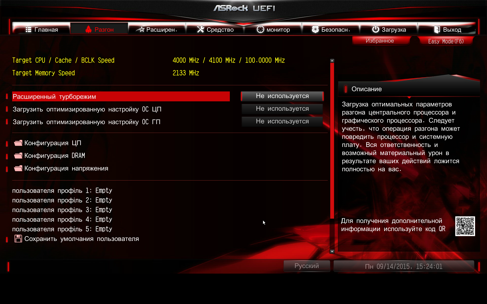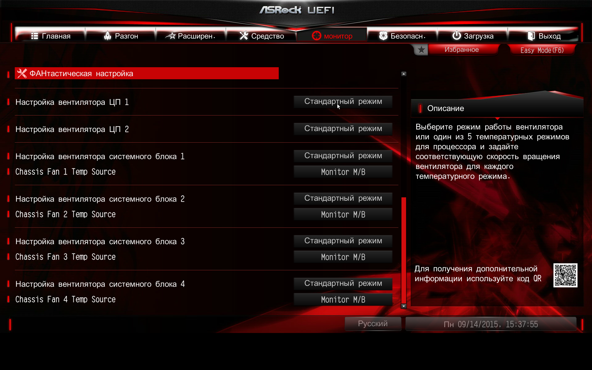 В режиме EZ Mode можно лишь просмотреть основную информацию о режимах работы платы, а также настроить некоторые параметры (например, выбрать режим работы вентилятора и т. д.).
