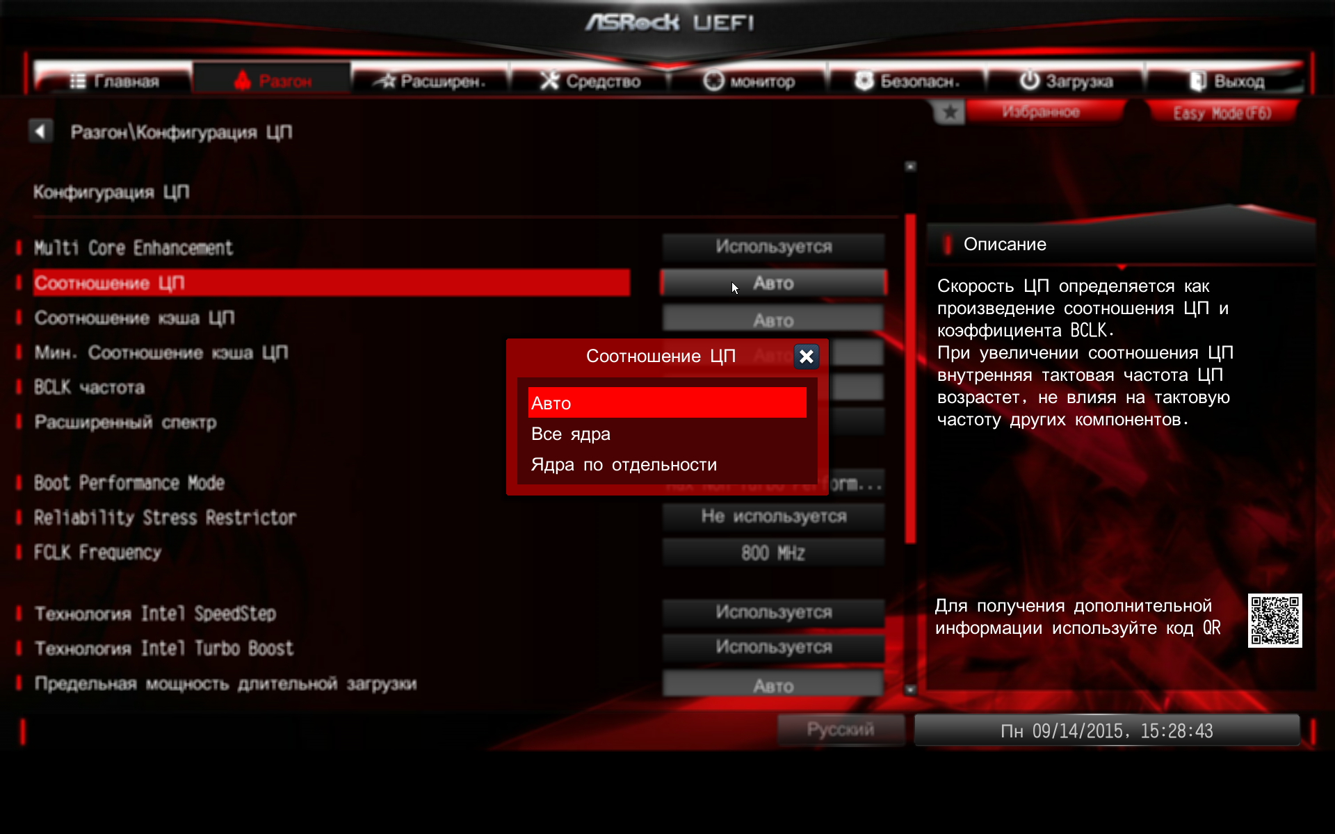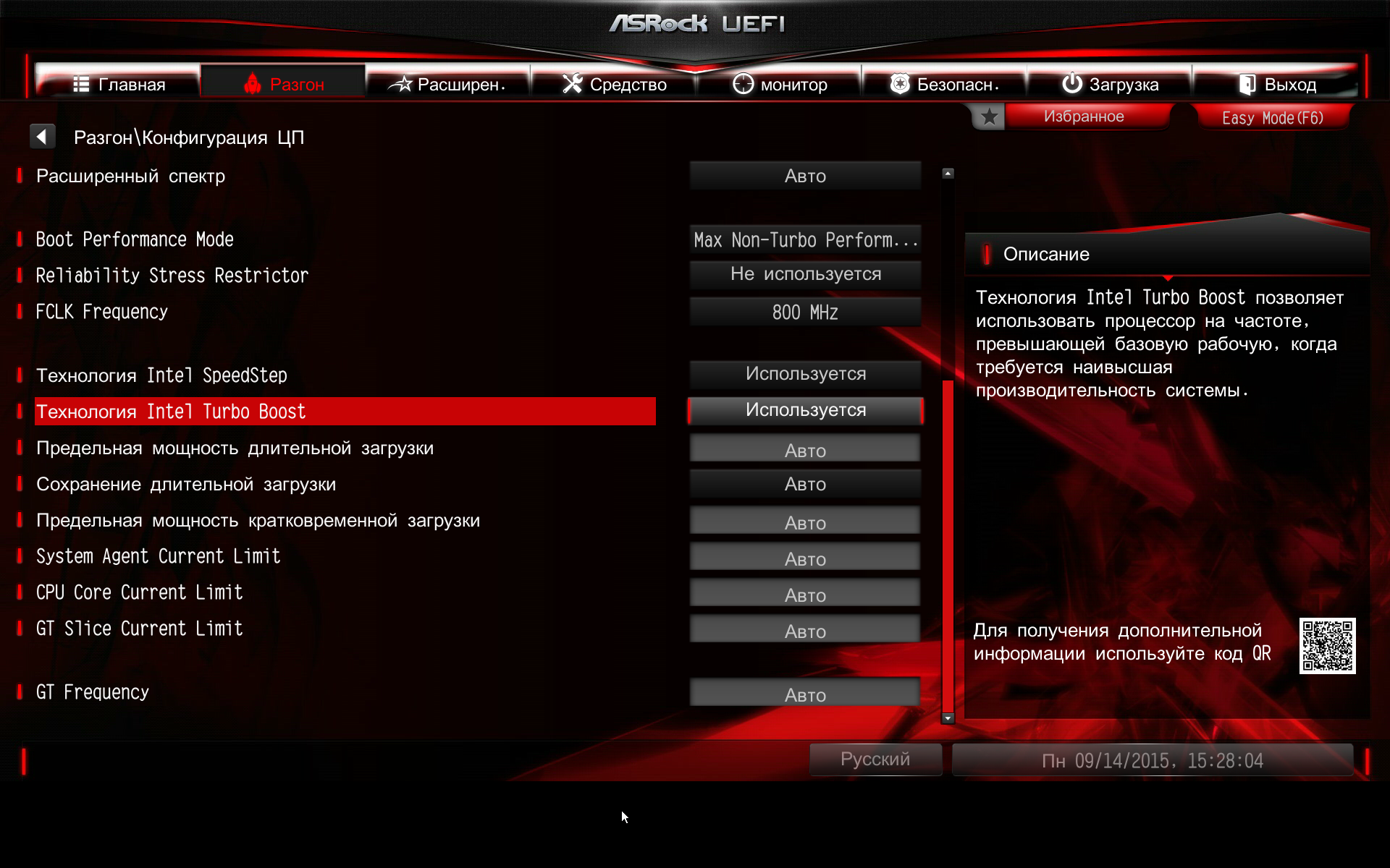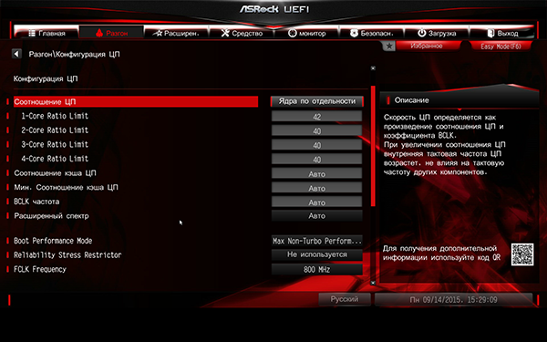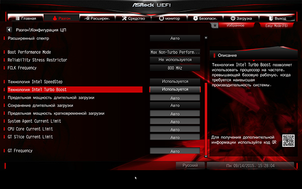 Также на вкладке Разгон имеется возможность настраивать технологию Intel Turbo Boost.