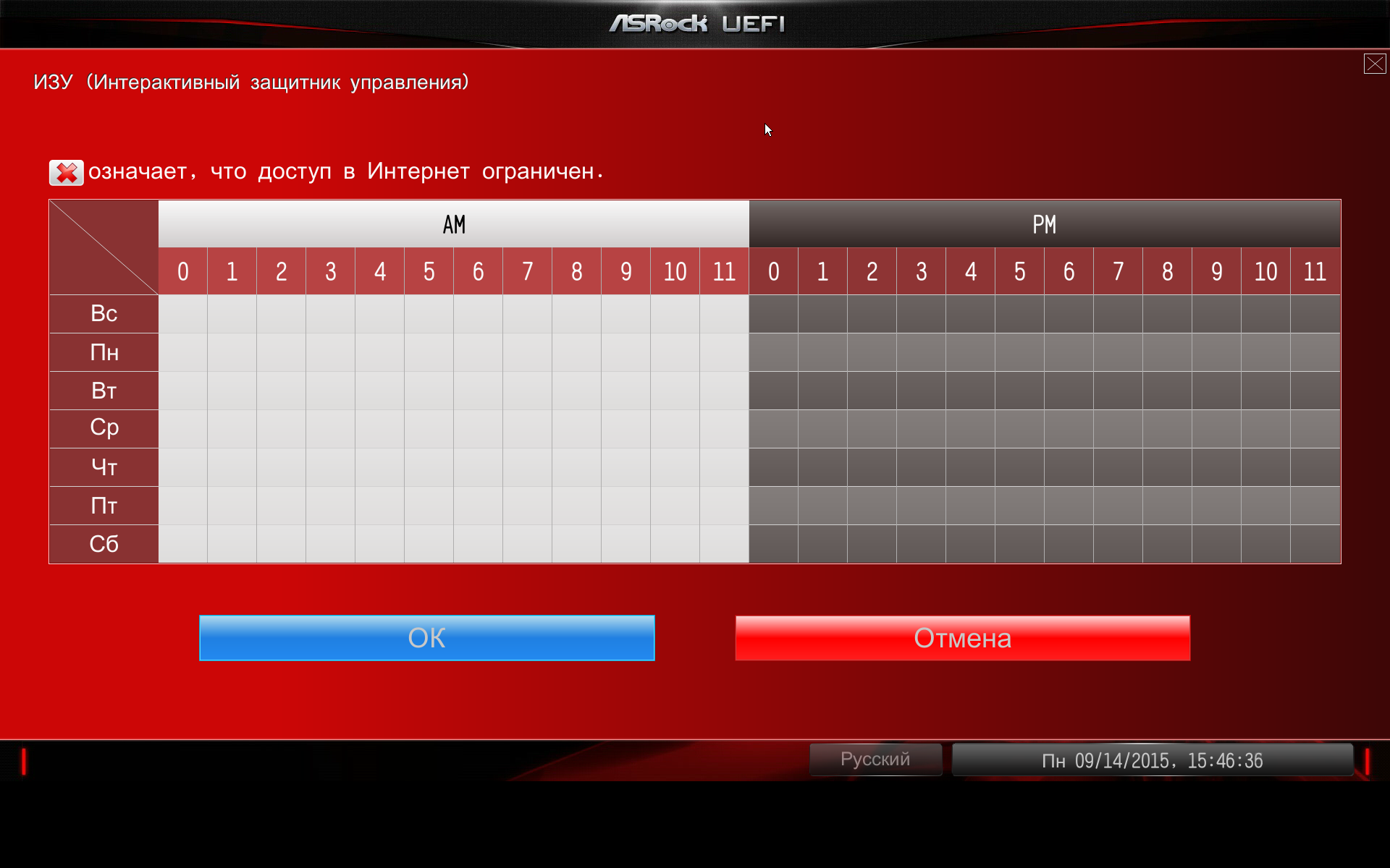 На этой же вкладке имеется и утилита Интерактивный защитник управления (Online Management Guard), которая позволяет создавать расписание доступа в интернет на каждый день. Для родителей, которые контролируют своих детей, утилита весьма полезная.