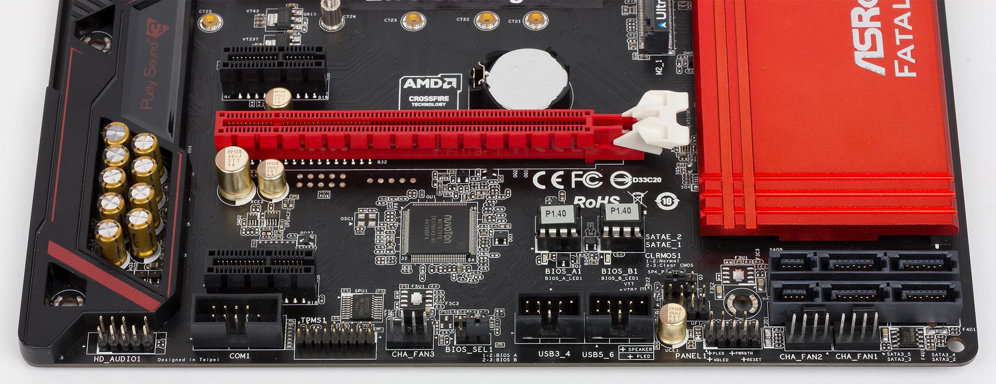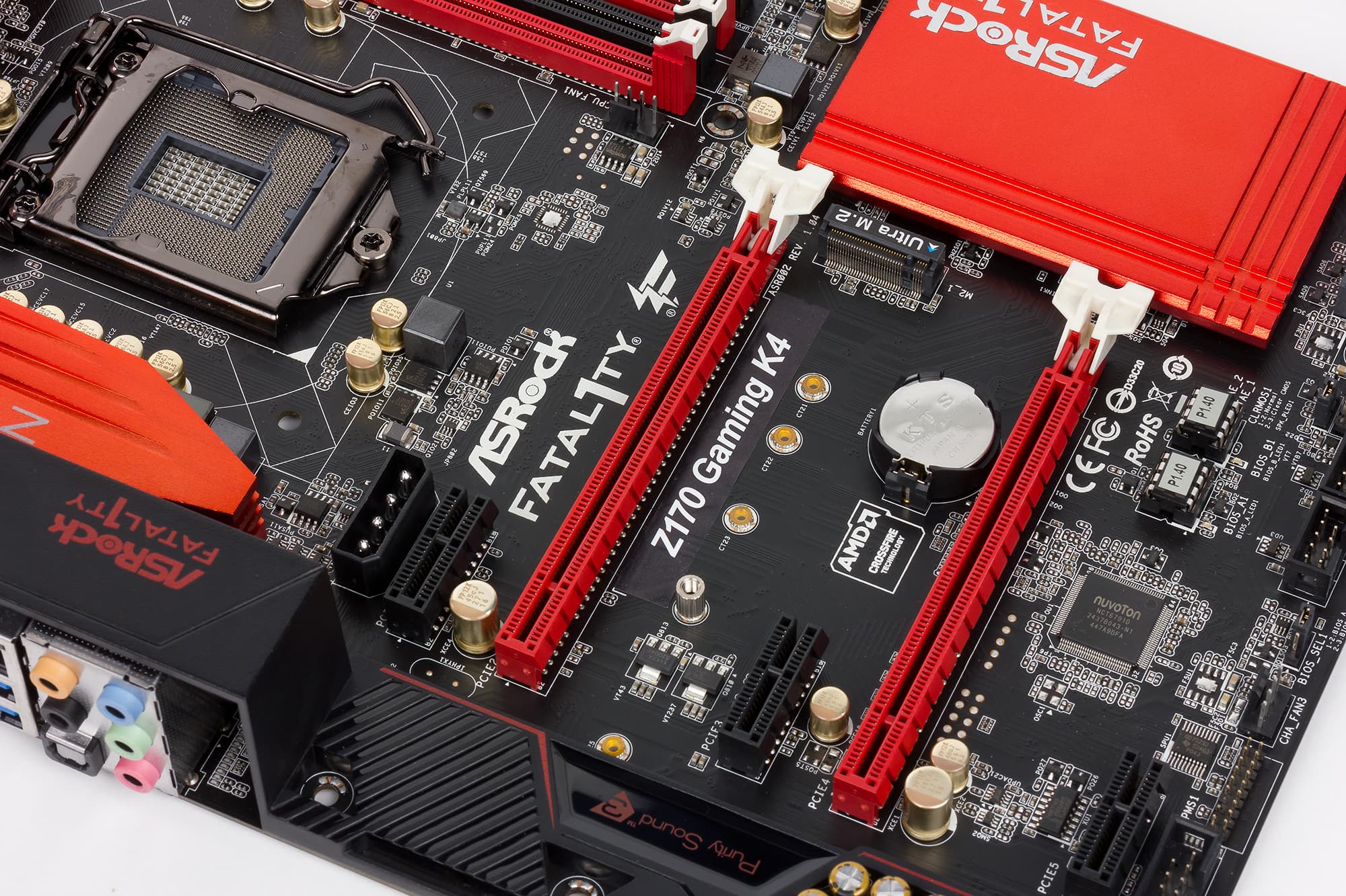Казалось бы: где тут логика? Почему бы не сделать второй слот на базе восьми процессорных линий PCIe 3.0? Возможно, с точки зрения конкретной платы, логики действительно нет. Но не все так просто. Дело в том, что такое решение нужно для оптимизации производства и удешевлении себестоимости. Если бы второй слот был реализован на базе процессорных линий PCIe 3.0, то потребовались бы дополнительные мультиплексоры/демультиплексоры линий PCIe 3.0 для переключения режимов работы первого слота. Естественно, это немного увеличило бы себестоимость. Но главное даже не в этом. Есть в ассортименте компании ASRоck плата Fatal1ty B150 Gaming K4. Чипсет другой, но вот сама PCB у плат ASRock Fatal1ty Z170 Gaming K4 и ASRock Fatal1ty B150 Gaming K4 — одинаковая. Просто на плате ASRock Fatal1ty B150 Gaming K4 не распаяны некоторые разъемы и микросхемы, но место под них есть. Делать две разные модели материнских плат на одной PCB получается дешевле (это и есть оптимизация производства). При этом чипсет Intel B150, как известно, не поддерживает группировку процессорных линий PCIe 3.0 в два порта x8. А потому на этих двух разных платах с одинаковой разводкой второй слот и сделан на базе четырех чипсетных линий PCIe 3.0.