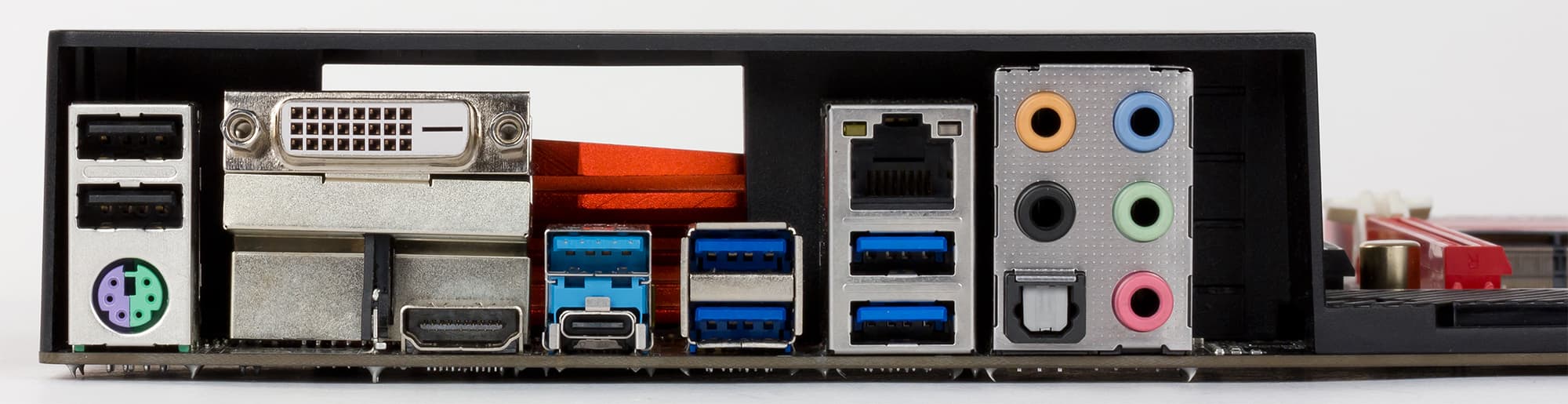 | Разъемы на задней панели | 5 × USB 3.0 (Type A) 1 × USB 3.0 (Type C) 2 × USB 2.0 1 × HDMI 1 × DVI-D 1 × RJ-45 1 × S/PDIF (оптический, выход) 5 × аудиоразъемов типа миниджек 1 × PS/2 |