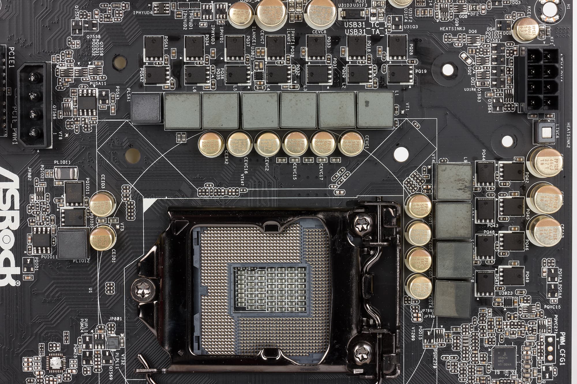 Регулятор напряжения питания процессора на плате является 10-канальным и основан на 6-фазном (4+2) PWM-контроллере Intersil ISL 95824. По всей видимости, восемь каналов (4 фазы) приходятся на вычислительные ядра процессора, а еще два канала (две фазы) приходятся на графическое ядро.