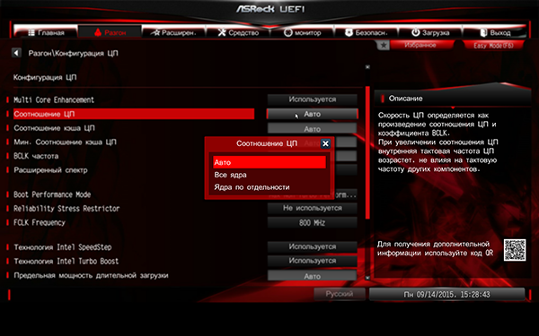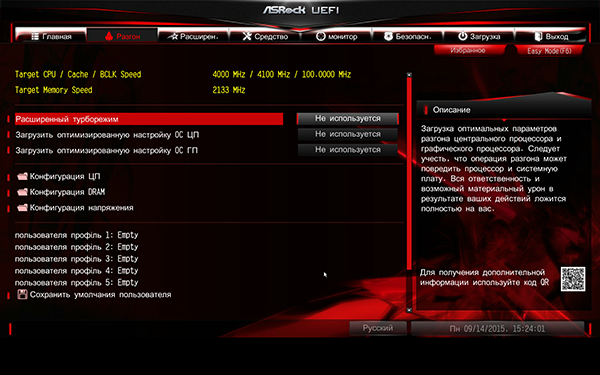 В заключение рассмотрим особенности настройки платы ASRock Fatal1ty Z170 Gaming K4 через UEFI BIOS.