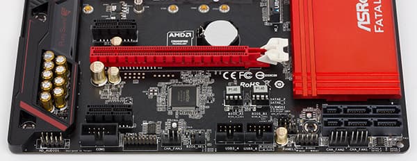 На самом деле, слот PCI Express 3.0 x4 реализован на базе четырех линий PCIe 3.0 от чипсета Intel Z170. Кстати, именно из-за отсутствия симметричного режима работы слотов данная плата игровой серии не поддерживает режим Nvidia SLI. Поддерживается только режим AMD CrossFireX.