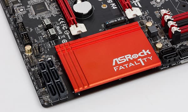 Для охлаждения различных тепловыделяющих компонентов на плате ASRock Fatal1ty Z170 Gaming K4 предусмотрено в совокупности три радиатора. Один из них установлен на чипсете, а еще два небольших радиатора расположены по двум сторонам от процессорного разъема и предназначены для отвода тепла от MOSFET-транзисторов регулятора напряжения питания процессора.