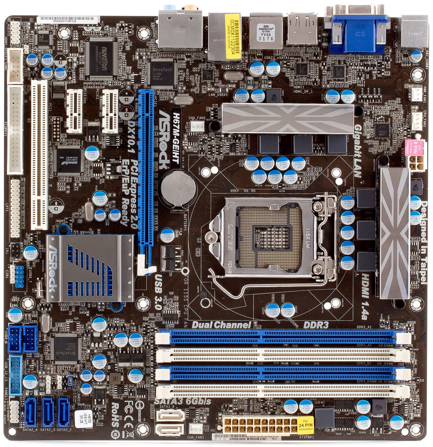 Плата основана на чипсете Intel H67 (единый мост H67), о возможностях которого вы можете узнать из обзорной статьи по ссылке. В дополнение к функциональности чипсета на плате реализованы: