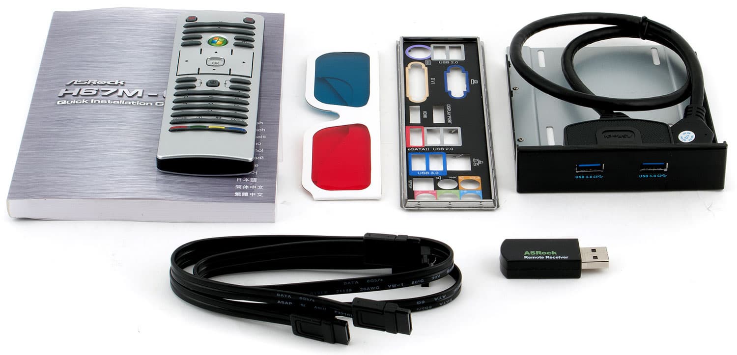 Конечно, формально поддерживается установка внешней видеокарты — соответствующий слот имеется в наличии (хотя всего один), но идея устанавливать дискретное видео в системную плату, где уже есть «полный фарш» в виде разъемов D-Sub/DVI/HDMI/DisplayPort, выглядит, как нам кажется, несколько странной — зачем тогда было за всё это платить? К декодированию и выводу видео (включая HD) этой платой нет никаких претензий, так что видеокарта вам может понадобиться только ради игр — но под них, наверное, разумнее приобретать иную модель. При одинаковом оснащении дополнительными контроллерами, мы, за счёт замены P67 на H67, реализации всей функциональности последнего, уменьшения размеров платы и «мягкого намёка» в виде прилагаемых в качестве бонуса анаглифных очков и пульта дистанционного управления, получили из недорогой платы для энтузиастов недорогую же основу для домашнего мультимедийного компьютера. Не то чтобы идея подобной трансформации «…в элегантные шорты» блещет новизной, но реализована она достаточно качественно, убедительно… и недорого. Последнее особенно радует.