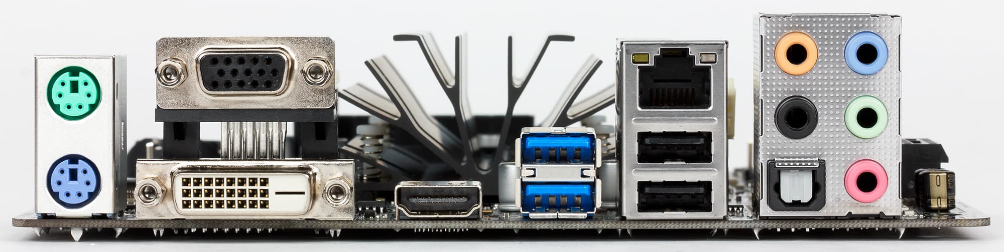 | Разъемы на задней панели | 1 × HDMI 2.0 1 × VGA 1 × DVI-D 2 × USB 3.0 2 × USB 2.0 1 × RJ-45 2 × PS/2 1 × S/PDIF (оптический, выход) 5 аудиоразъемов типа миниджек |