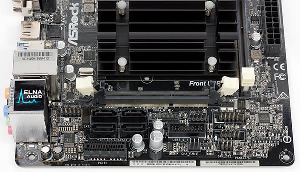 SoC Apollo Lake поддерживают уже до шести линий PCIe 2.0, которые можно объединять для создания более «широких» слотов, нежели х1 (т. е. ограничения предыдущих платформ становятся все менее жесткими). Однако необходимость установки дополнительных контроллеров и общая «скученность» компоновки привели к тому, что «стандартное» для Mini-ITX место занято слотом расширения PCIe x1. Причем, к сожалению, этот слот действительно «настоящий» х1 и без пропила — как и в предыдущих линейках плат компании. Но там установке «длинных» карт мешали бы другие компоненты, а вот в данном случае это просто дань традициям. Что, впрочем, недостатком если и является, то незначительным, поскольку в такие системы разнообразные видеокарты и прочее подобное никто не устанавливает. А если просто чешутся руки — можно «почесать» их об одну из моделей формата microATX, благо там как раз один из слотов имеет исполнение х16 (хоть и работает по-прежнему как х1).