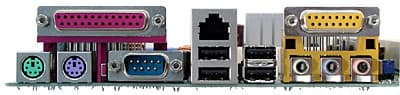 - Разъемы PS/2 для клавиатуры и мыши, 1 LPT-порт, 1 COM-порт;
