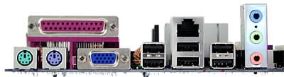 - Порты PS/2 для мыши и клавиатуры, 1 LPT, 1 D-Sub (VGA);