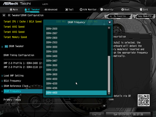 На этой же вкладке настраивается режим работы памяти. Максимальная частота памяти DDR4 может быть равна 4400 МГц.