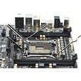 Как мы уже сказали, слотов PCIEx16 на плате три, так что они напрямую подключены к процессору и могут работать в максимальном режиме x16+x16+x8. В случае установки процессора, реализующего поддержку шины PCI-E 3.0 (напомним, что контроллер PCI Express давно переехал в процессор), слоты на плате также будут работать в этом режиме — производитель все от него требующееся для этого сделал.