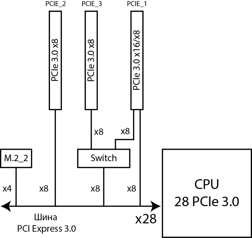 При установке процессора 28 линиями PCIe 3.0 один из разъемов M2 (разъем M2_1) поддерживает только установку SATA-устройств.