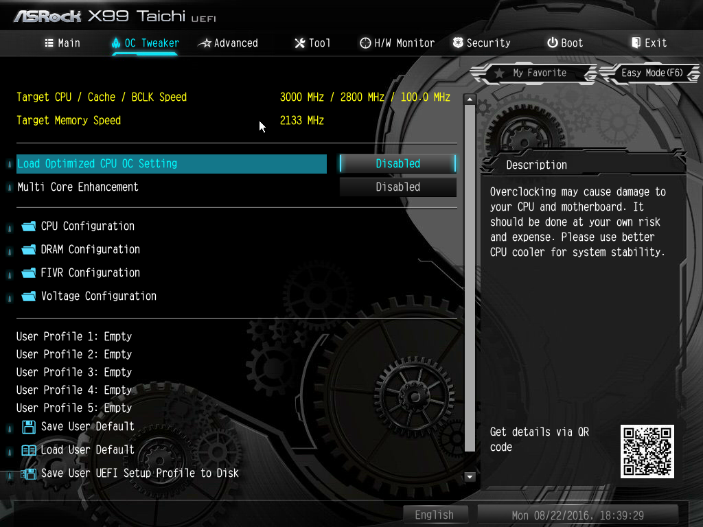 Если говорить об UEFI BIOS, то на плате ASRock X99 Taichi все типично для плат на базе чипсета Intel X99.