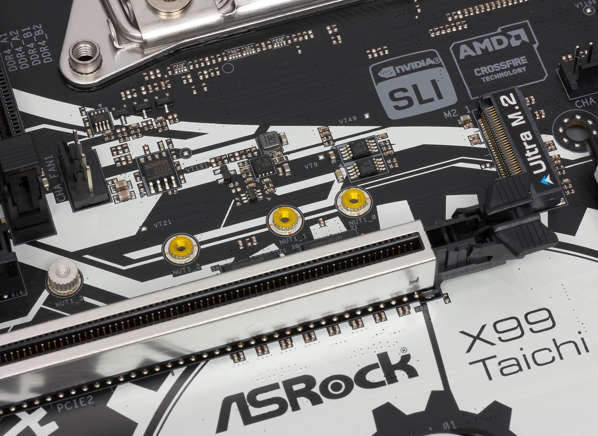 Для установки видеокарт или плат расширения на материнской плате ASRock X99 Taichi имеется три слота с форм-фактором PCI Express x16 и два слота PCI Express 2.0 x1.
