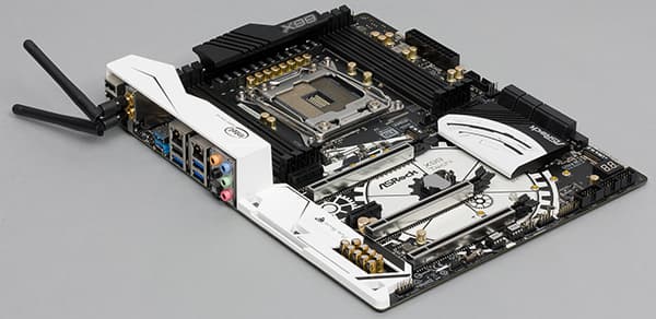Для подключения всевозможных периферийных устройств на плате предусмотрено пять портов USB 3.0, семь портов USB 2.0 и два порта USB 3.1. Напомним, что сам чипсет Intel X99 поддерживает только до 14 портов USB из которых до 6 портов могут быть портами USB 3.0.