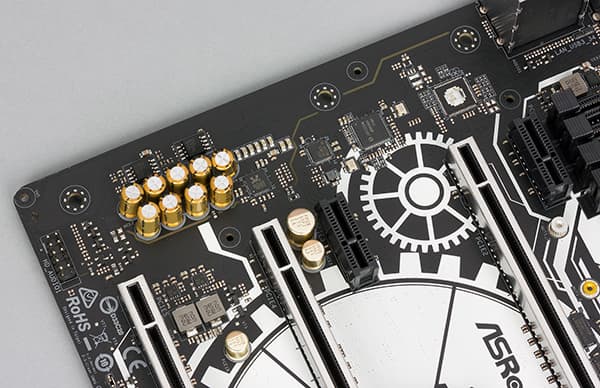 Прежде всего, отметим, что на плате нет никаких дополнительных коммутаторов портов PCIe 2.0, нет дополнительных USB-хабов и кроме того, что уже было перечислено, никакие порты и слоты друг с другом не разделяются. Напомним, что разделяются лишь два порта SATA с двумя разъемами разъемами M.2, а для разъема SATA Express, естественно, задействуется только два высокоскоростных порта (либо два порта PCIe 2.0, либо два порта SATA 6 Гбит/с).