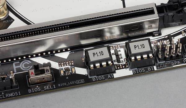 Еще можно отметить наличие тумблера, позволяющего выбирать микросхему BIOS при загрузке (на плате имеется две микросхемы BIOS).