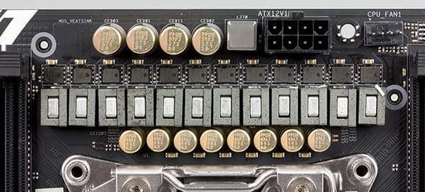 Для охлаждения чипов регулятора напряжения питания процессора на плате имеется радиатор, расположенный рядом с процессорным разъемом.