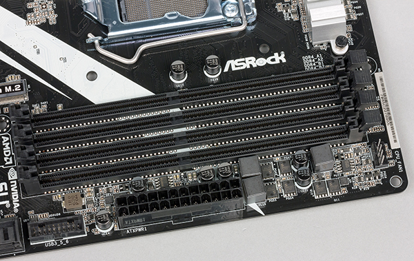 Для установки модулей памяти на плате ASRock Z270 Killer SLI предусмотрено четыре DIMM-слота. Плата поддерживает небуферизованную память DDR4 (non-EСС), а максимальный объем памяти составляет 64 ГБ (при использовании модулей емкостью по 16 ГБ).