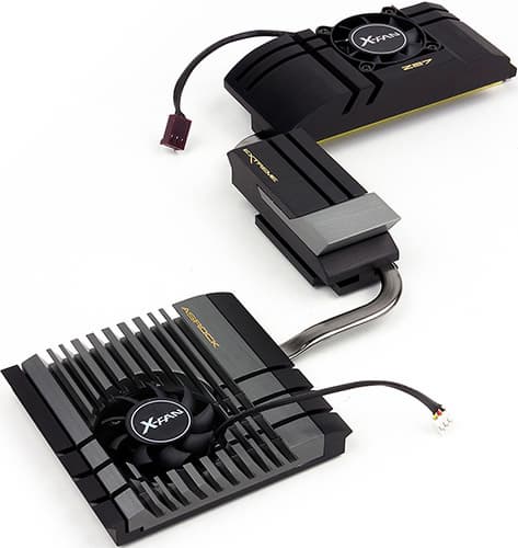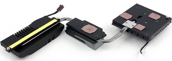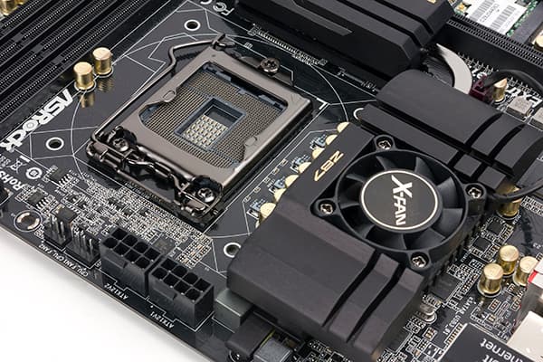 На плате также имеется система из трех радиаторов, связанных между собой тепловой трубкой. Один радиатор со встроенным в него вентилятором расположен рядом с процессорным разъемом и закрывает MOSFET-транзисторы. Еще один радиатор закрывает чип PLX PEX 8747. Ну а третий радиатор, в который также встроен вентилятор, закрывает чипсет, контроллер LSI SAS 3008 и экспандер портов LSI SAS 3x24R.