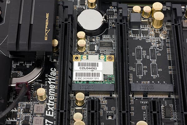 Кроме этого на плате ASRock Z87 Extreme11/ac имеется модуль беспроводной связи (Wi-Fi+Bluetooth 4.0/3.0), который установлен в разъем Mini PCI Express.