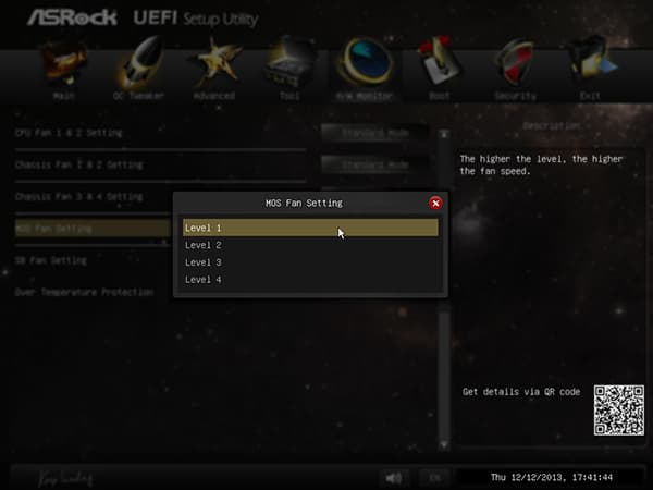 Для остальных трех вентиляторов можно просто выбирать «уровень» скорости вращения (от Level 0 до Level 4). Как выяснилось в ходе измерений, уровень Level 0 соответствует напряжению питания 7 В, а уровень Level 4 — напряжению питания 12 В.