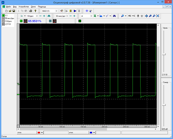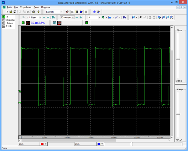 С использованием осциллографа, контролируя температуру процессора, мы проверили, действительно ли меняется скорость вращения четырехконтактного вентилятора кулера процессора. Настроив вручную скоростной режим работы вентилятора, мы выяснили, что минимальная скважность PWM-импульсов, которая подается на вентилятор, составляет 30% — эта скважность соответствует минимальной скорости вращения вентилятора.