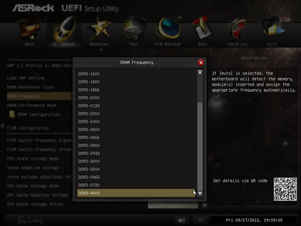 Для разгона процессора и памяти в UEFI BIOS предусмотрена вкладка OC Tweaker. На этой вкладке можно установить частоту памяти вплоть до 4000 МГц. Ну и конечно же, имеется возможность настройки таймингов памяти.