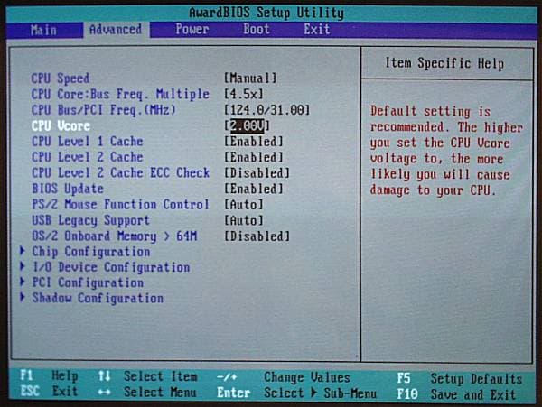 Кроме того, при использовании технологии JumperFree есть возможность увеличения напряжения питания процессора до 2.4 В с шагом 0.05 В. Возможность нужная, но все же плохо, что нельзя понизить напряжение питания — иногда при разгоне это помогает. К тому же повышать напряжение более чем на 10% крайне опасно — при работе в таком режиме у процессора совершенно запросто может сгореть L2-кеш. Потому я бы не рекомендовал пользоваться значениями Vcore большими 2.2 В, откровенно говоря я даже удивлен что они попали в BIOS Setup.