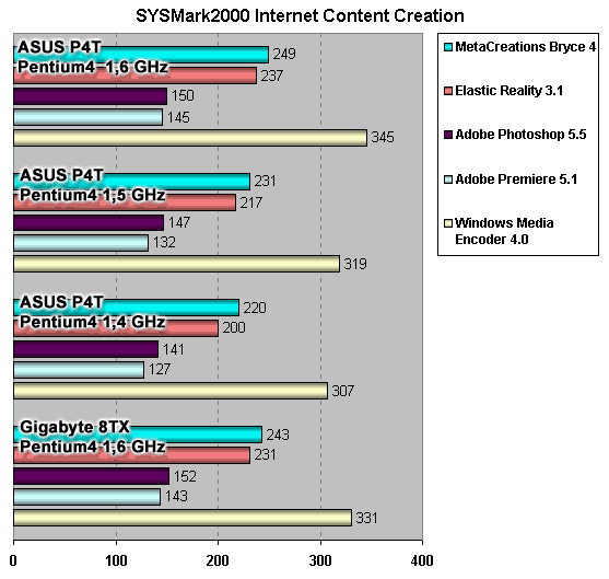 Что касается системной платы P4T, то она весьма серьезно опередила свою соперницу от Gigabyte, продемонстрировав впечатляющую производительность.