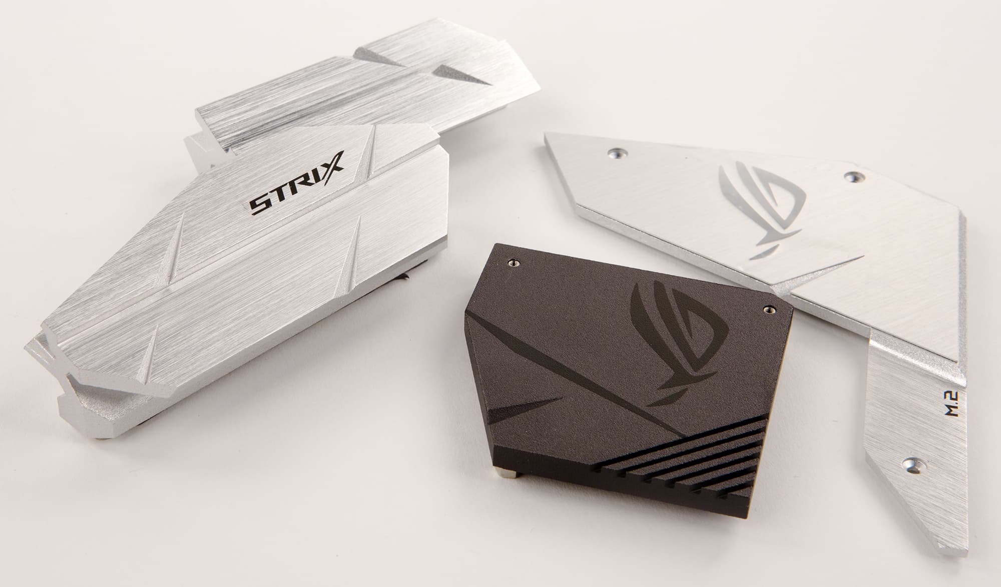 Система охлаждения платы Asus ROG Strix Z370-E Gaming состоит из трех радиаторов. Два радиатора расположены по двум смежным сторонам процессорного разъема и предназначены для отвода тепла от MOSFET-транзисторов регулятора напряжения питания процессора. Еще один радиатор состоит из двух частей. Одна часть предназначена для охлаждения чипсета, а вторая — для охлаждения SSD-накопителя, устанавливаемого в разъем M.2_1.