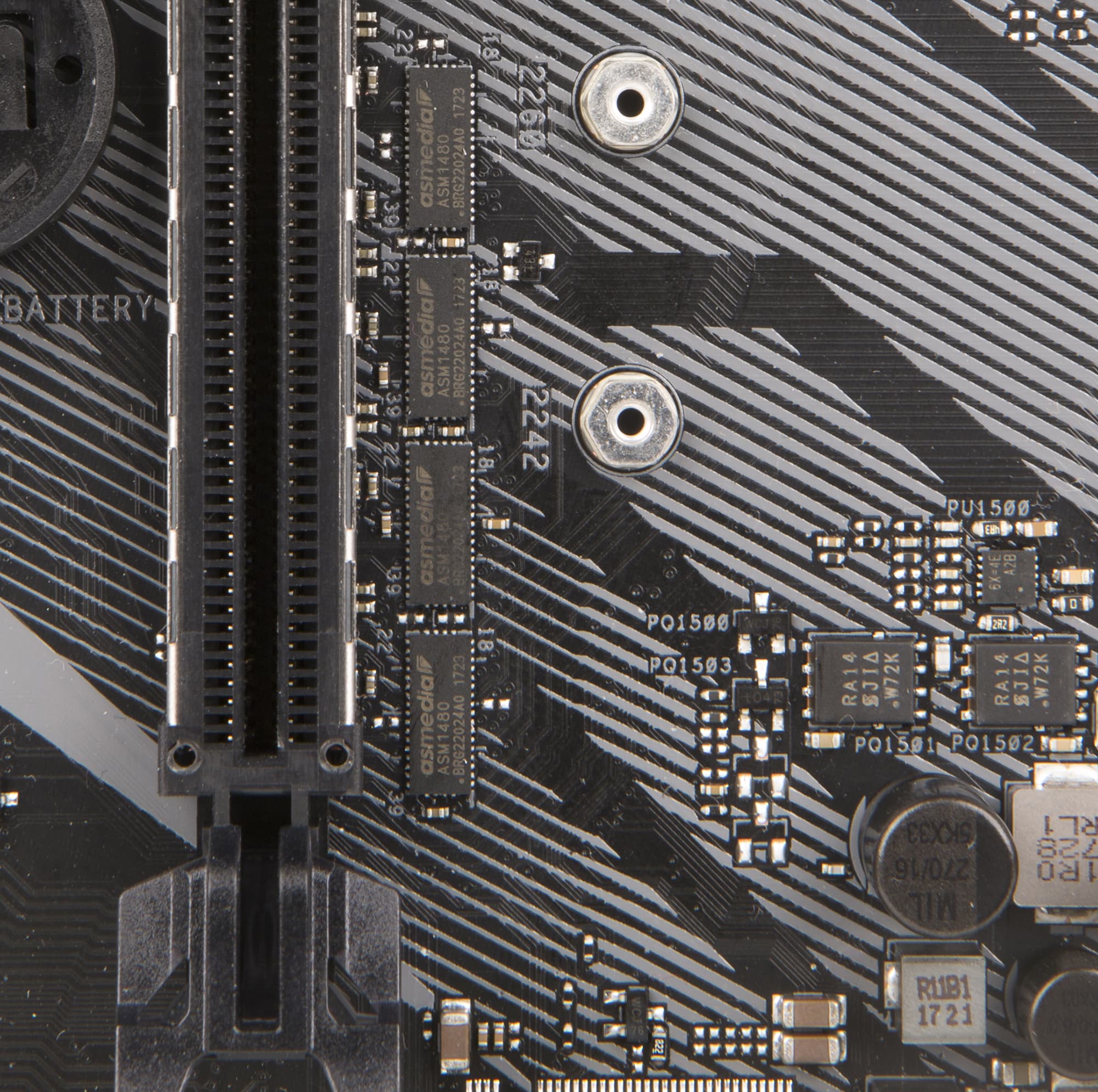 Первый (если считать от процессорного разъема) слот с форм-фактором PCI Express x16 (PCIE_X16/X8_1) реализован на базе процессорных линий PCIe 3.0 и представляет собой слот PCI Express 3.0 x16. Это переключаемый слот, который может работать на скоростях x16/x8. За переключение порта отвечают мультиплексоры-демультиплексоры линий PCIe 3.0 ASMedia ASM1480.