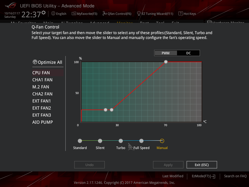 И конечно же, в UEFI BIOS Setup можно настроить скоростной режим работы вентиляторов.