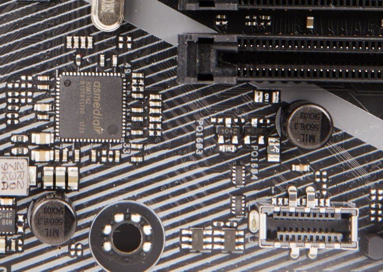 Два порта USB 3.1, выведенные на заднюю панель платы, реализованы на базе контроллера ASMedia ASM3142, который подключается к чипсету по двум линиям PCIe 3.0. Один из этих портов имеет разъем Type-A, а другой — Type-C.