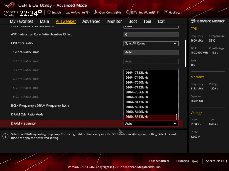 Естественно, имеется возможность разгонять память, изменяя ее частоту и тайминги. Максимальная частота памяти DDR4 составляет 8533 МГц (при частоте BCLK 100 МГц).