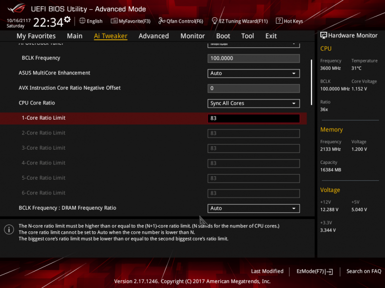 Все настройки, предназначенные для разгона системы, собраны на вкладке Ai Tweaker. На этой вкладке можно поменять частоту BCLK (BCLK Frequency) и коэффициент умножения (CPU Core Ratio).