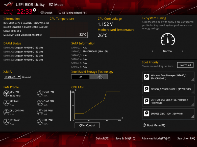 Недавно мы рассматривали плату Asus Prime Z370-A, и интерфейс настройки UEFI BIOS платы Asus ROG Strix Z370-E Gaming отличается от того, что мы видели у Asus Prime Z370-A, лишь цветовой гаммой интерфейса. Возможности абсолютно такие же.