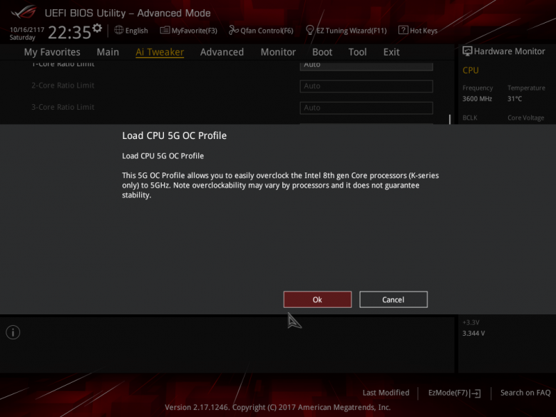 Можно воспользоваться и разгонным пресетом. В частности, предусмотрен пресет разгона до частоты 5,0 ГГц.