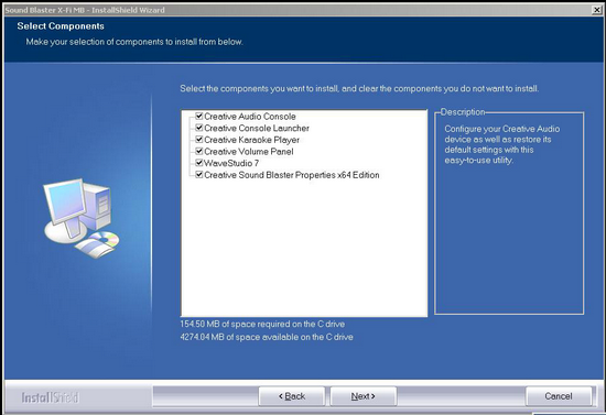 Действительно, даже скромный недорогой аудиокодек начинает звучать гораздо чище, если его поместить на отдельную карту, и вполне пригоден не только для озвучки игр, но и прослушивания музыки на аудиосистеме среднего ценового диапазона. Но что означают в таком случае символы X-Fi и пропечатанная на корпусе поддержка EAX 4.0? Сreative действительно написала драйвер и дополнительное ПО, которое устанавливается поверх стандартного драйвера AD SoundMax.