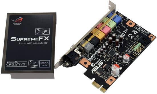 А поскольку в таком случае свободным останется лишь один порт, занять его ASUS предлагает единственно необходимой в оснащении игрового ПК (помимо видеокарт) функцией вывода качественного многоканального звука. Тут мы переходим к описанию опциональных компонентов, которые и должны обеспечить дополнительную привлекательность этой плате в глазах энтузиастов и оправдать ее немалую цену. В первую очередь это звуковая карта — SupremeFX X-Fi. Назвать ее звуковой картой, впрочем, можно лишь с поправкой на тот факт, что в ней используется не самостоятельный аудиопроцессор (от Creative, как можно было бы подумать, прочитав название), а HD Audio-кодек Analog Devices AD2000B, лишь установленный на отдельную плату и снабженный качественной аналоговой обвязкой.