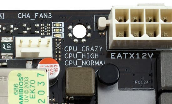 Вторая, и основная группа фирменных особенностей платы относится к оверклокерским «штучкам». Что-то в этом вопросе однозначно полезно, например, возможность подключить до 6 вентиляторов с автоматическим управлением частотой вращения из BIOS или кнопка Mem-OK, действительно позволяющая вывести компьютер из ступора, если он возник после выставления слишком высокой частоты или жестких таймингов памяти.