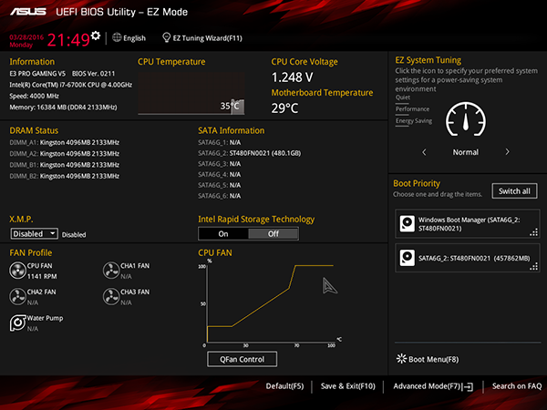 Режим EZ Mode предназначен для базовой конфигурации платы и контроля основных параметров, а тонкая настройка платы и разгон системы доступны только в режиме Advanced Mode.