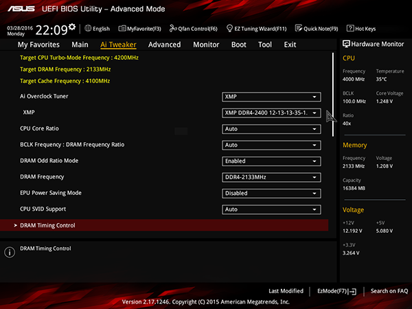 Для разгона процессора и памяти предназначена традиционная вкладка AI Tweaker. Однако давайте вспомним, что чипсет Intel C232 (как и Intel B150) не позволяет разгонять процессор и память. То есть вкладка AI Tweaker в данном случае — это просто дань традиции.
