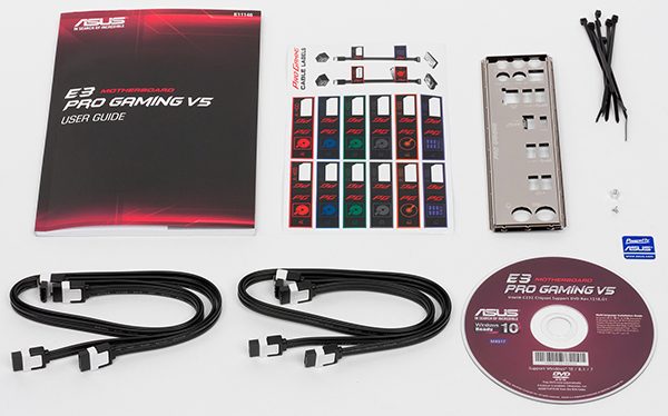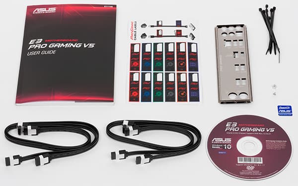 Поскольку плата Asus E3 Pro Gaming v5 не относится к элитной серии Asus, комплект ее поставки довольно скромный.