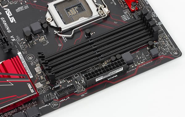Для установки модулей памяти на плате Asus E3 Pro Gaming v5 предусмотрено четыре DIMM-слота. В руководстве пользователя отмечается, что плата поддерживает только небуферизованную память DDR4 (non-EСС), а максимальный объем памяти составляет 64 ГБ (при использовании модулей емкостью по 16 ГБ).