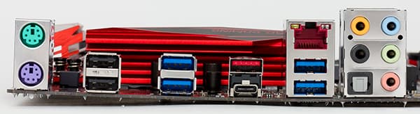 | Разъемы на задней панели | 4 × USB 3.0 2 × USB 2.0 1 × USB 3.1 (Type A) 1 × USB 3.1 (Type C) 1 × RJ-45 2 × PS/2 1 × S/PDIF (оптический, выход) 5 × аудиоразъемов типа миниджек |