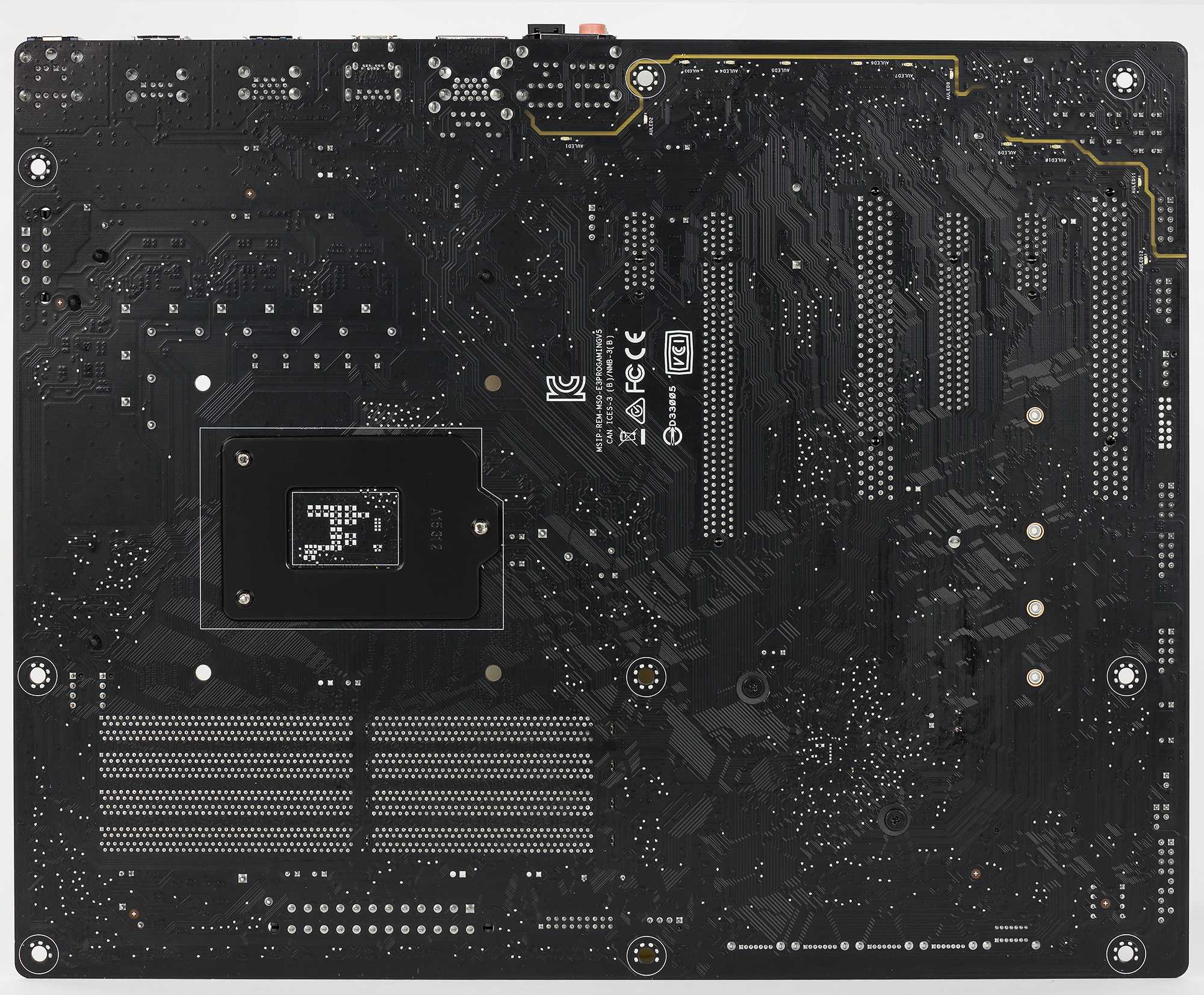 Плата Asus E3 Pro Gaming v5 выполнена в форм-факторе ATX (305×244 мм), а для ее монтажа предусмотрены девять стандартных отверстий.